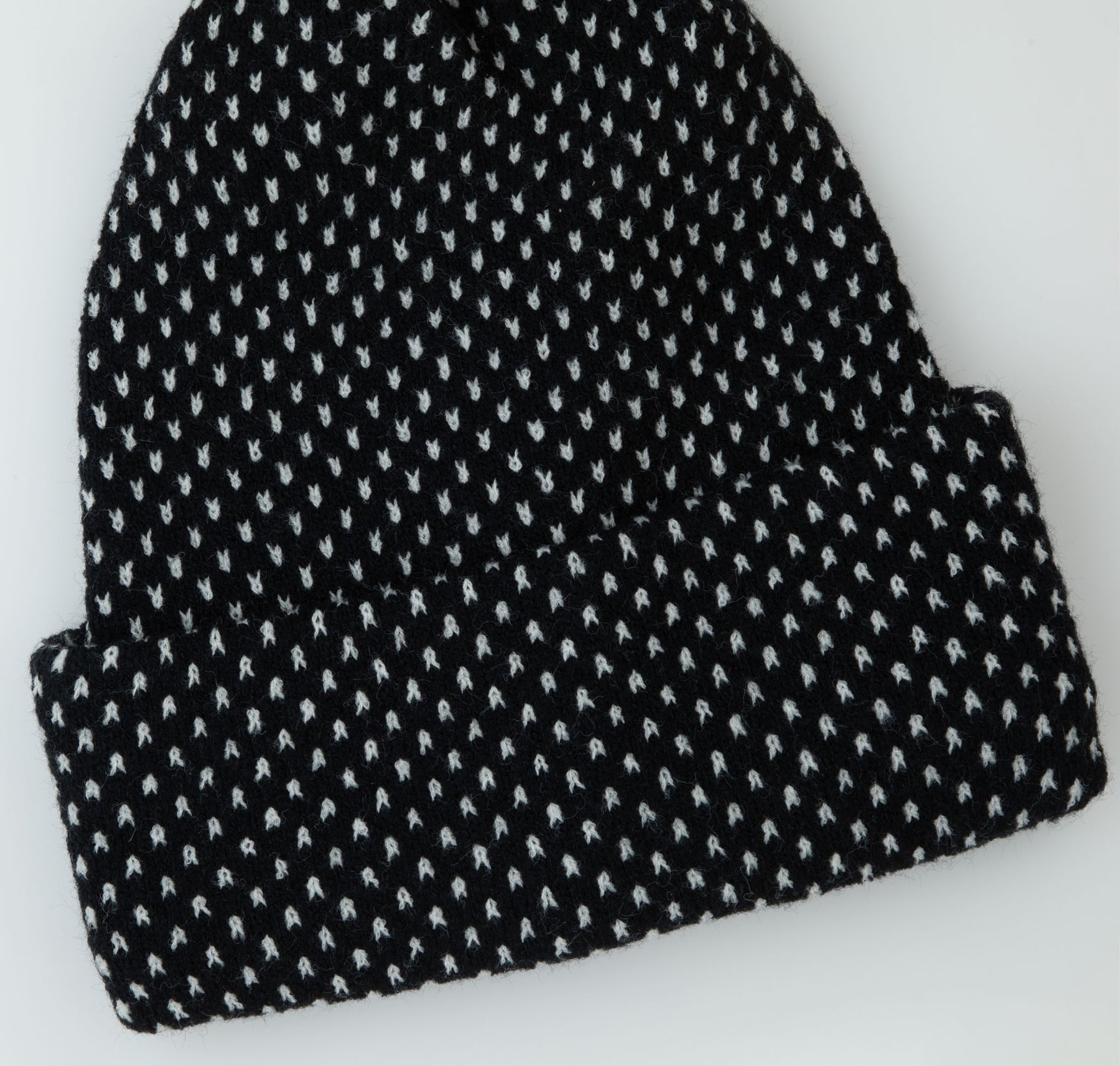 Extra chunky and funky, cuff beanie. Lots of extra "pop" on top. Stretchy. Runs large, great for medium through XL heads. Will have more material/pop on top on smaller heads.