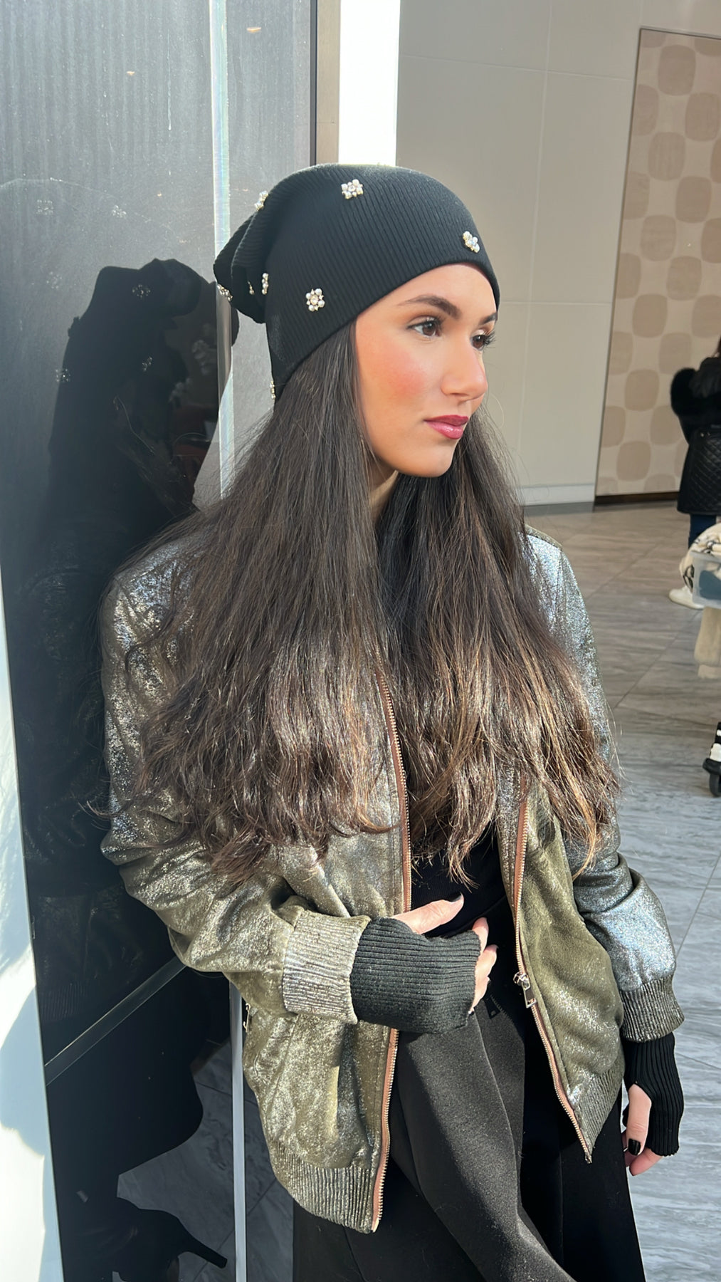 Tackle the winter in style ❄️️ Thin ribbed sweater fabric beanie. Fits most heads, small through large.
