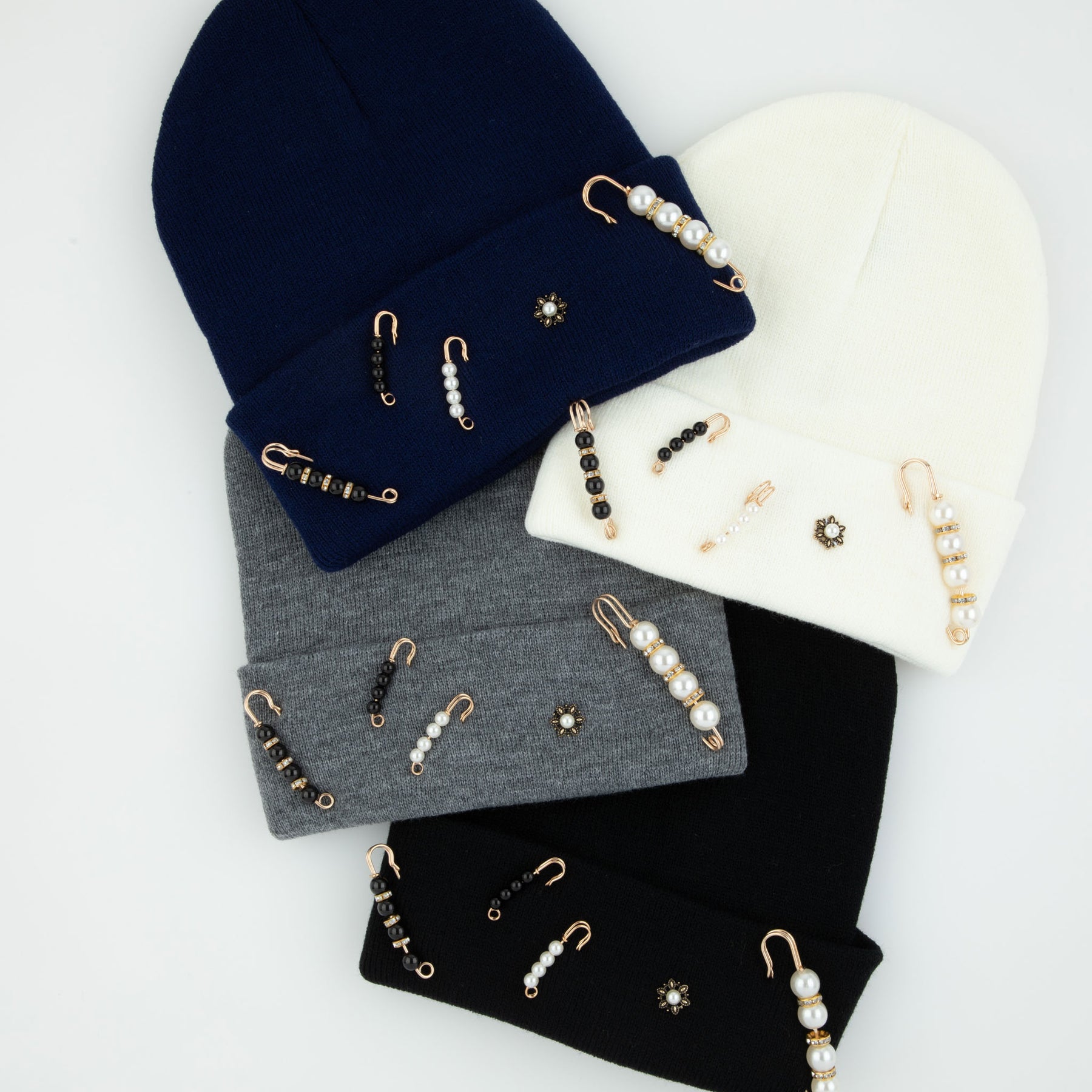 Gorgeous new pin bling arranged on our classic Cami cuff beanie.