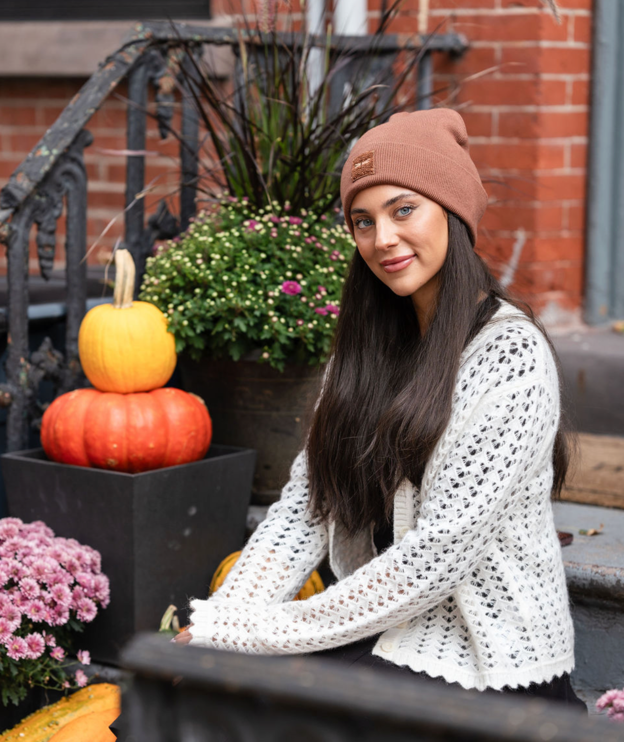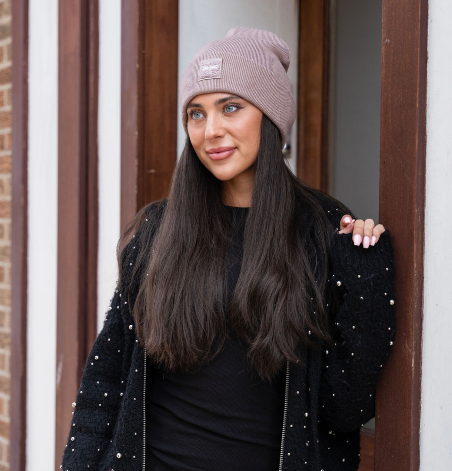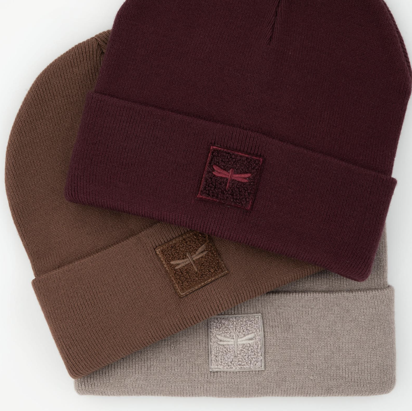 Featuring a chic monochrome sherpa dragonfly logo on each color beanie. On our classic cuff beanie, this one's a winter essential. Luxurious knit fabric.