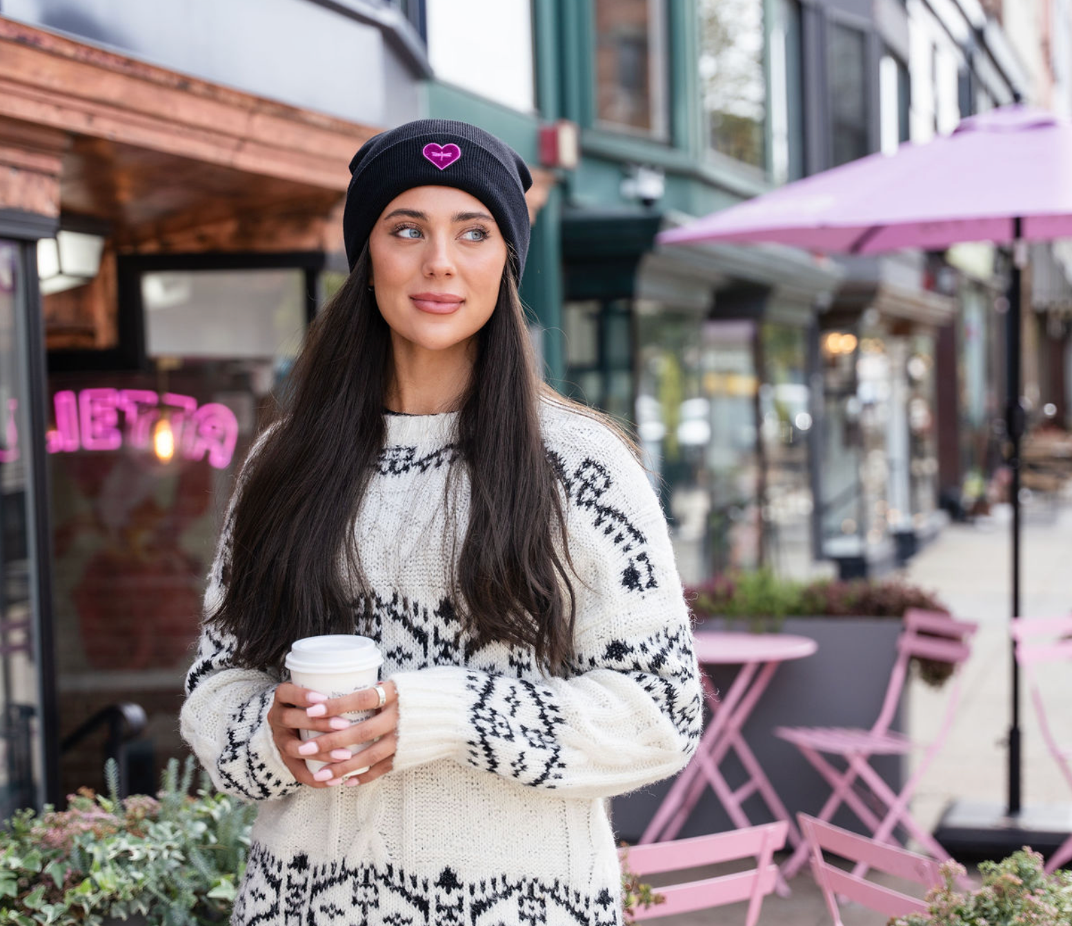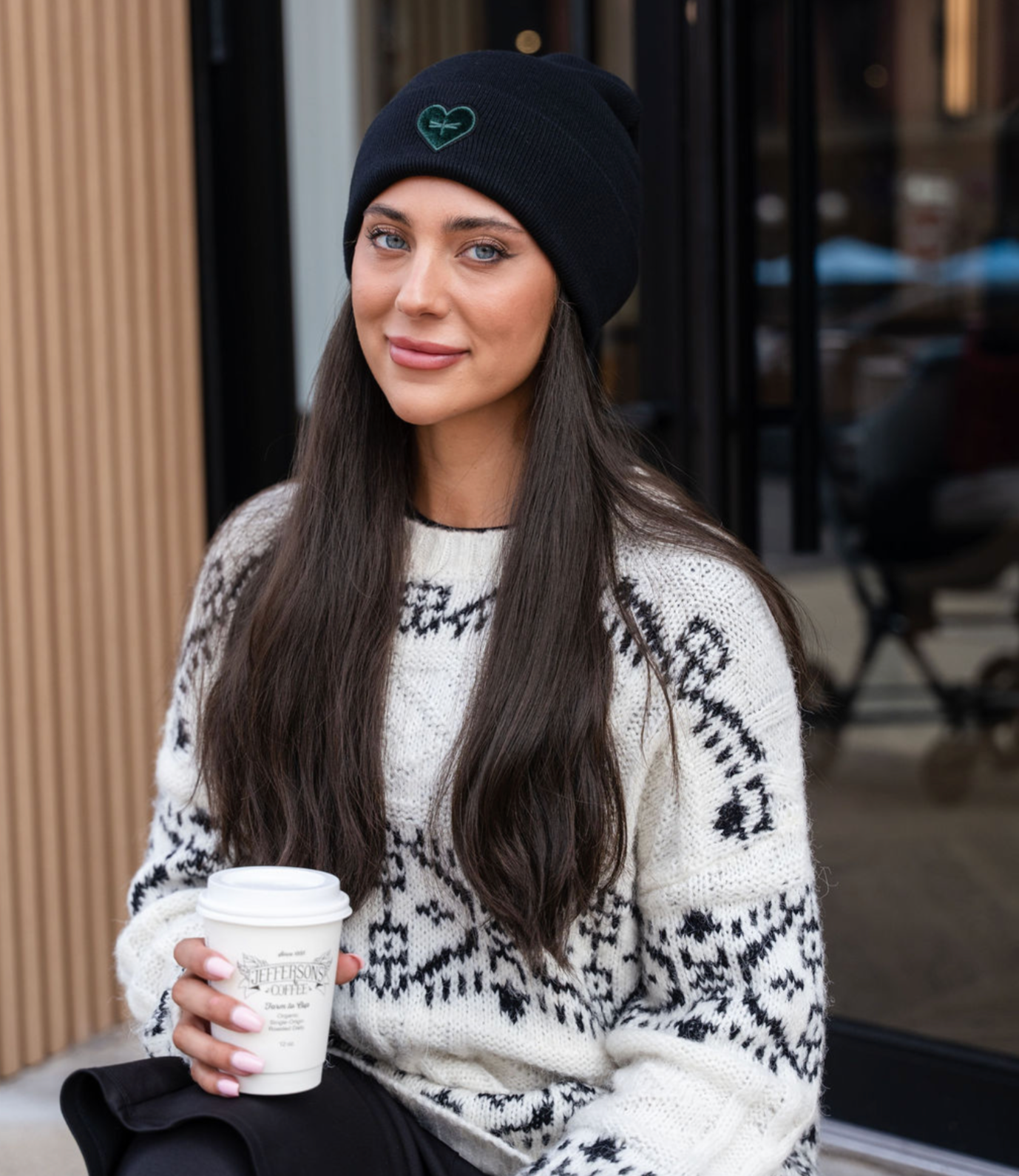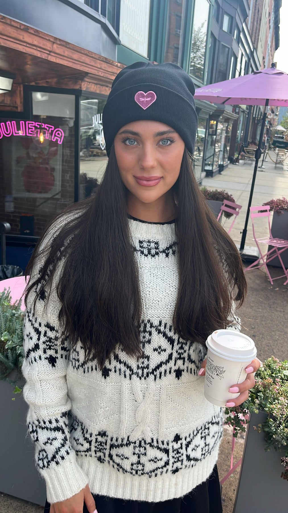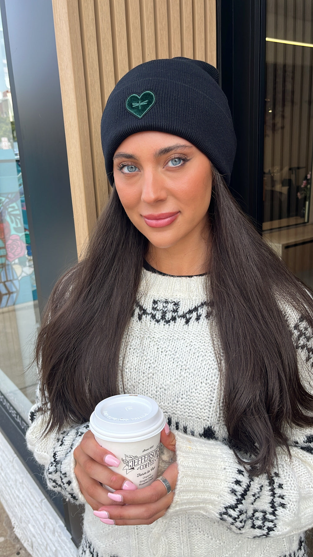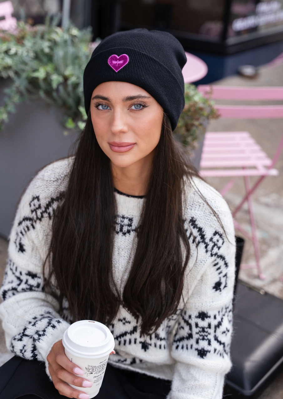 Bestselling Black With A Twist! Newest color hearts of your favorite beanie, in black! Super cute.
