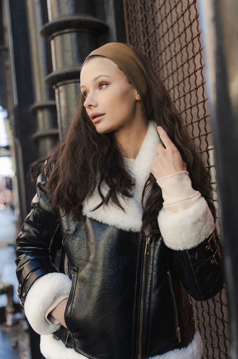 Luxurious new ribbed knit fabric with monochrome labels to match each color beanie. For a chic winter look. Thin and soft, transitional fabric.