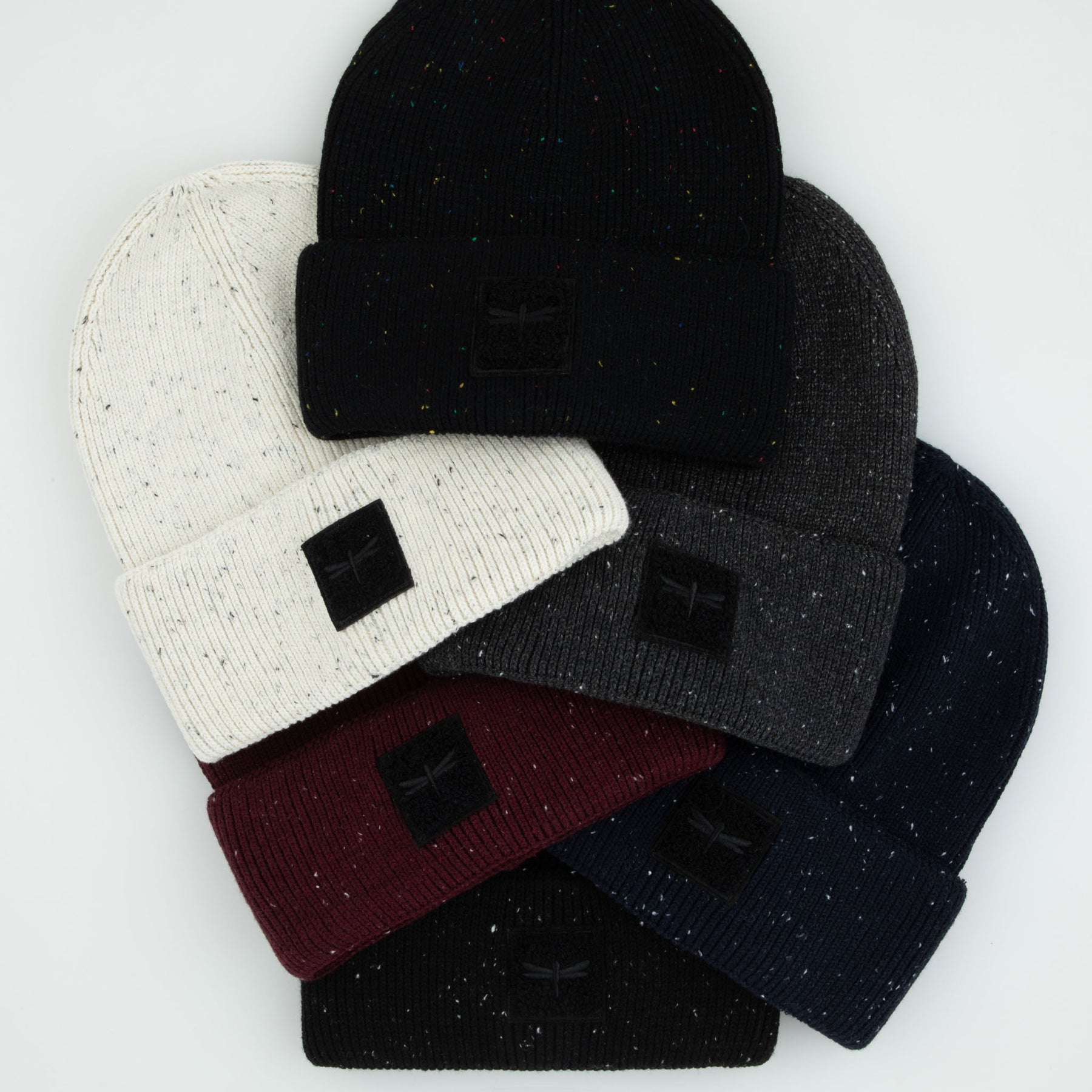 Gorgeous speckled cuff beanie goodness with a pop ✨ 6 Color Ways, 4 Logo Options