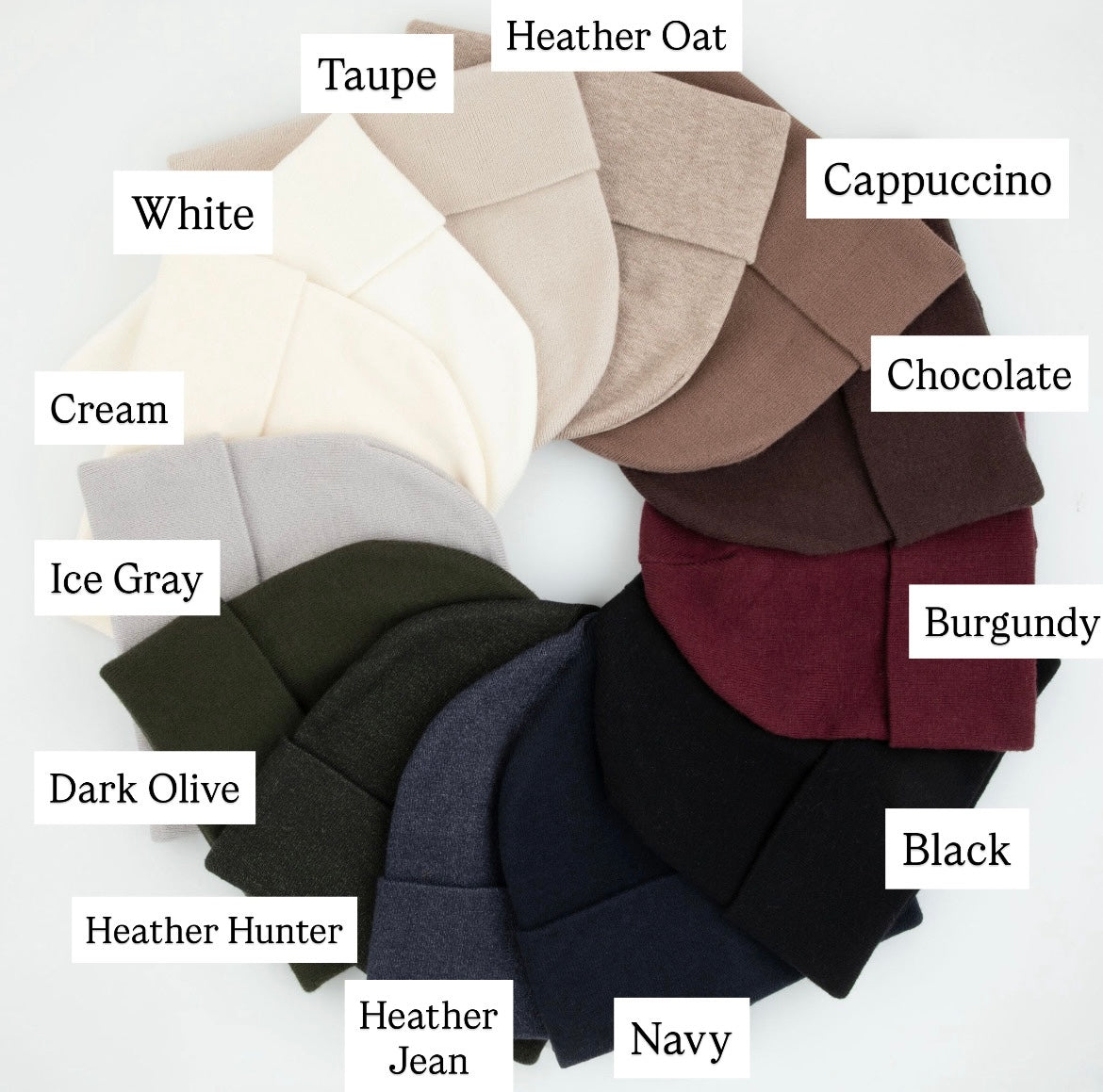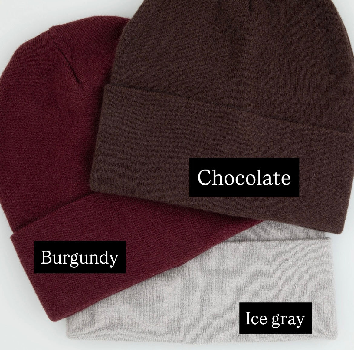 Beautiful shades that flatter every palette. A classic cuff beanie. Luxurious stretchy knit fabric. Slightly thinner than our Sherpa Logo and Embossed Beanies.