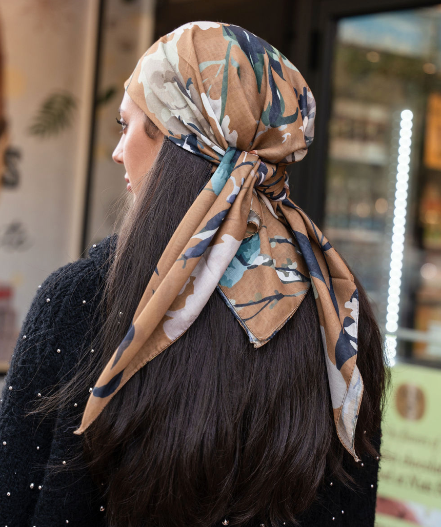 Available in pretied scarf with inner grip, standard headscarf size (tichel), standard headscarf size with a hidden velvet grip piece, and bandana.