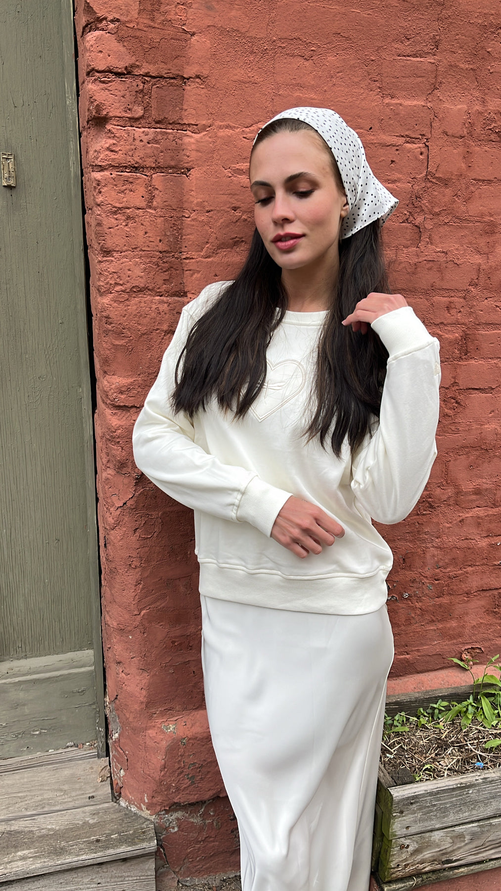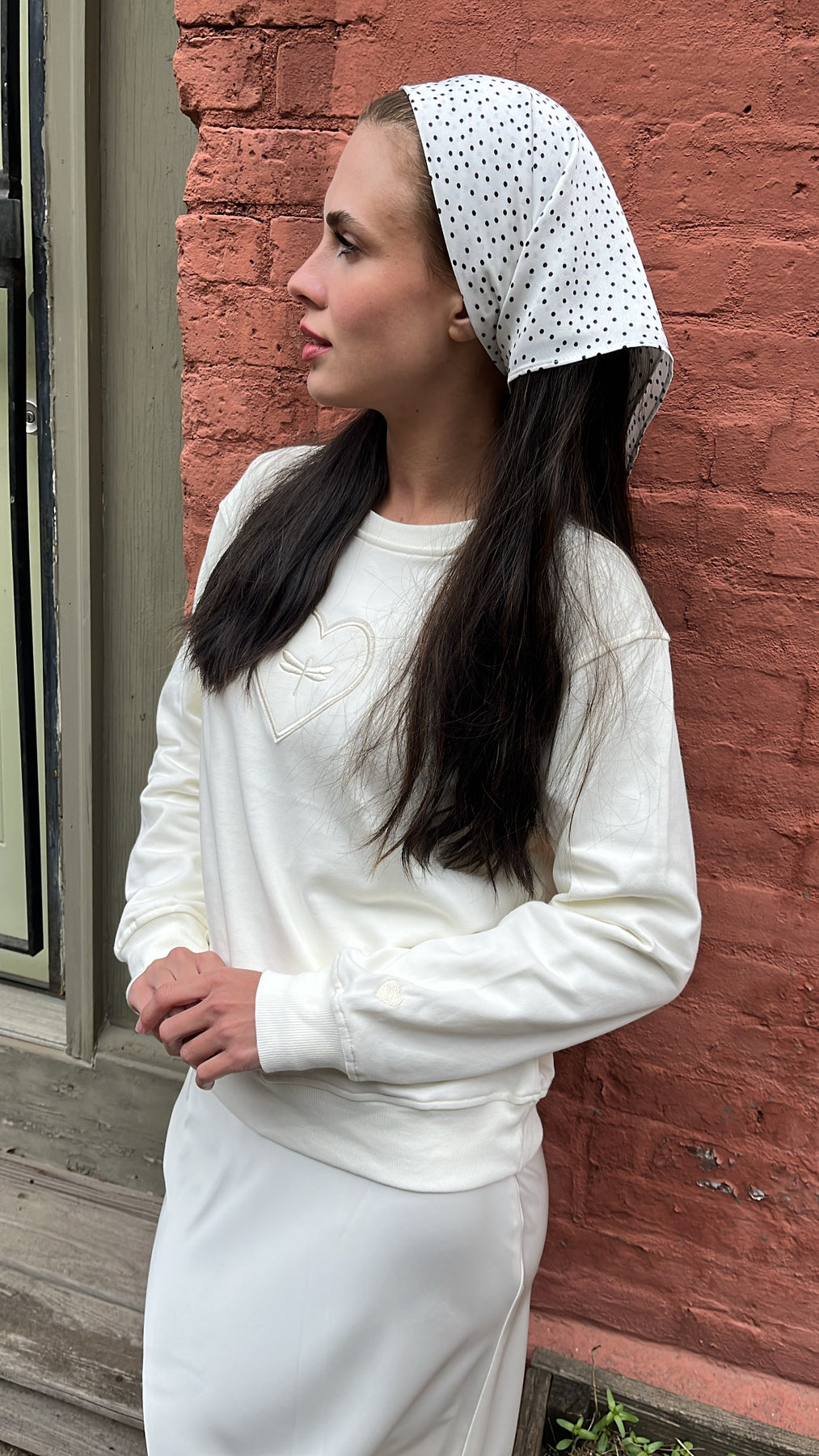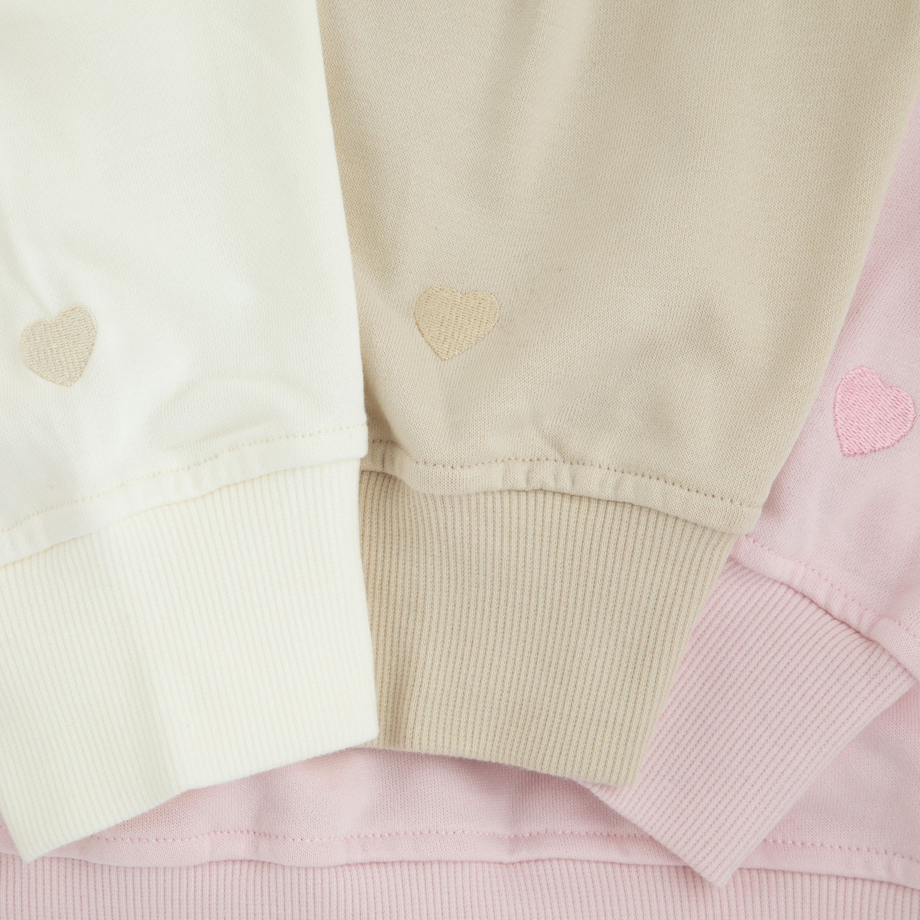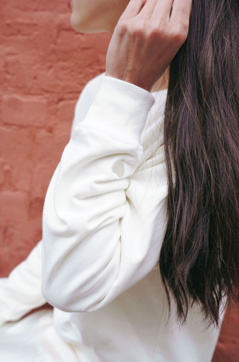 Featuring our chic monochrome logo heart in center or a smaller subtle side logo. With a little pop of cute at the wrist, a monochrome embroidered heart.