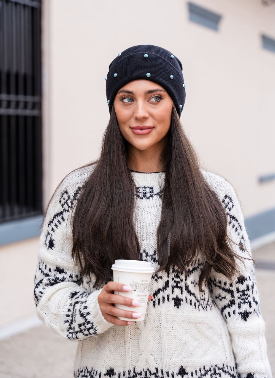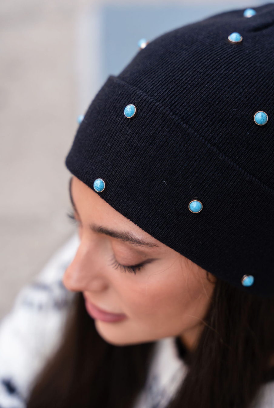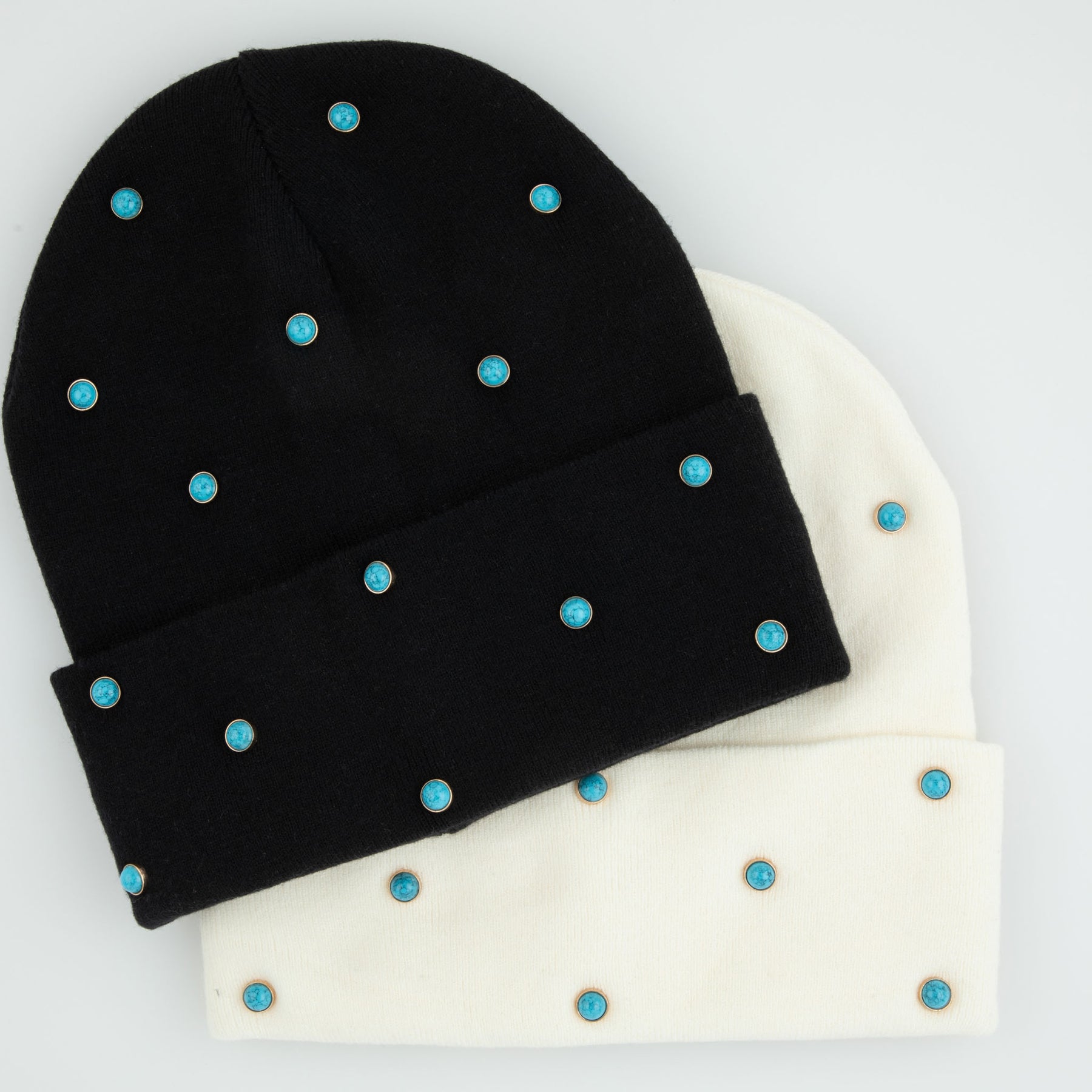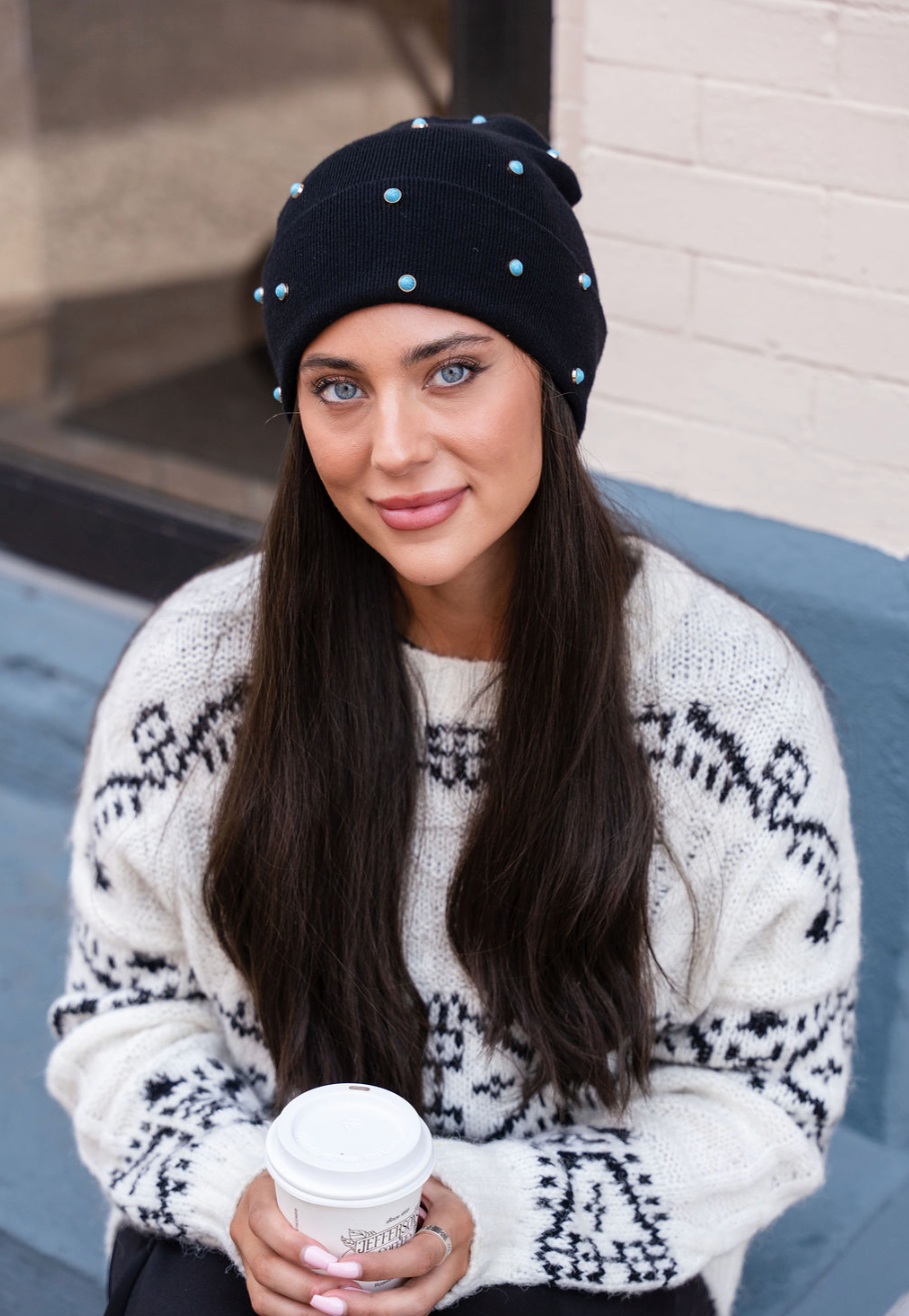 The perfect combination of basic and bling ✨ New turquoise studded beanies! Super cool!